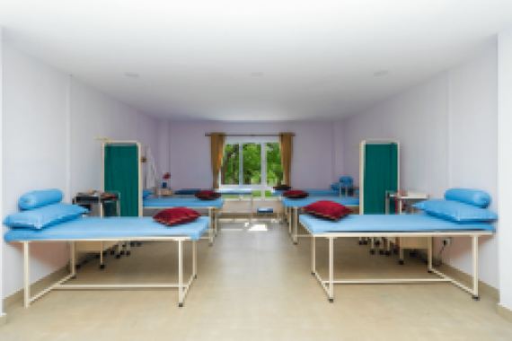 A facility within the care home where residents or visitors receive medical consultations, treatments, and therapies without requiring an overnight stay.